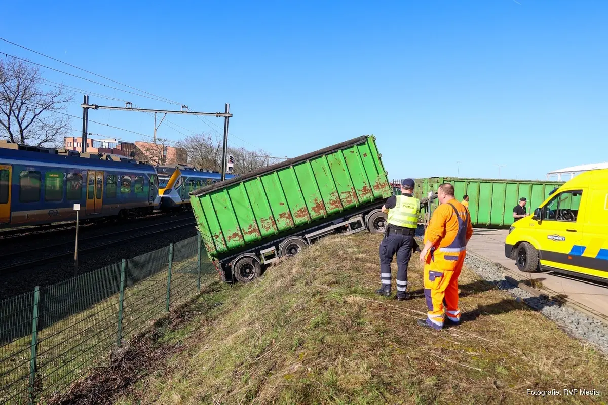 Pro Rail is ook ter plaatse, die gaan straks het trein verkeer stilleggen zodat de berger veilig de aanhanger kan bergen.