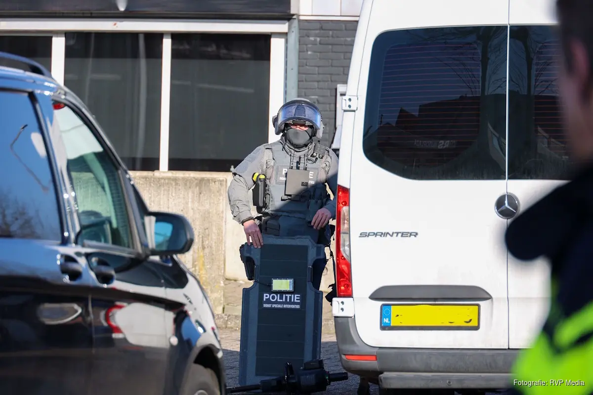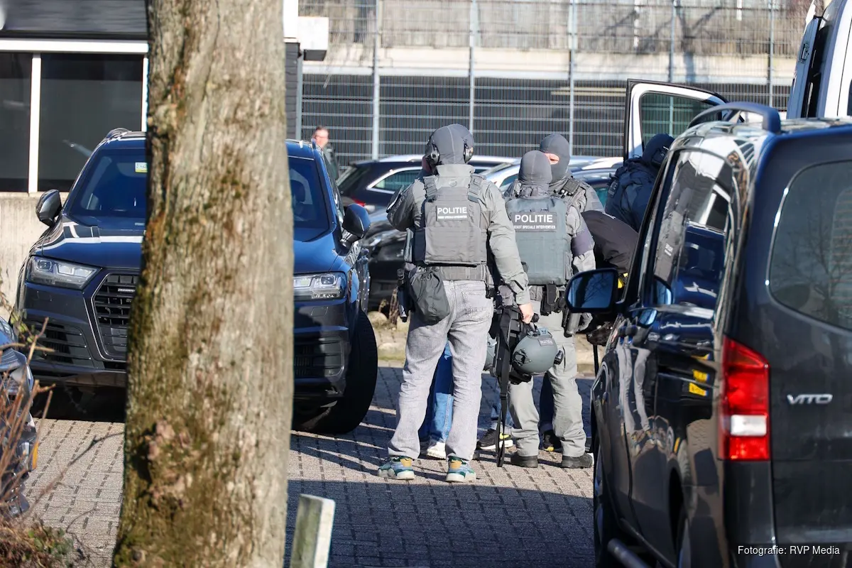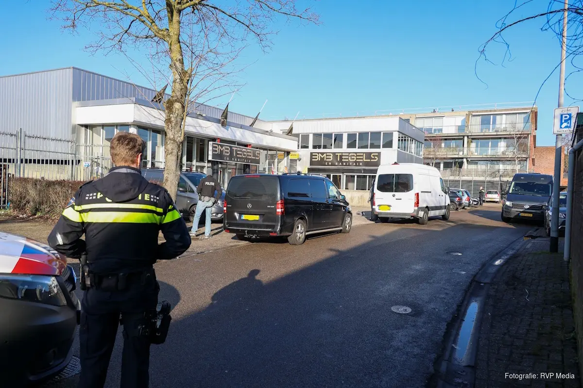 HILVERSUM – Het arrestatieteam heeft vanmiddag een inval gedaan in een pand aan de Korte Noorderweg in Hilversum. De inval vond plaats bij BMB Tegel en Sanitair, dat op dat moment geopend was.