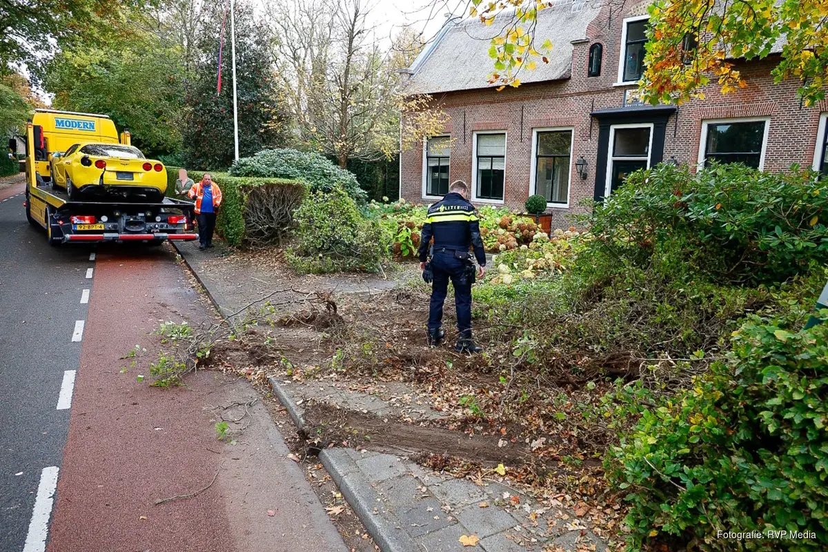 LOOSDRECHT - Woensdagmiddag rond 13:00 uur is een auto tot stilstand gekomen in een voortuin aan de Nieuw-Loosdrechtsedijk in Loosdrecht.