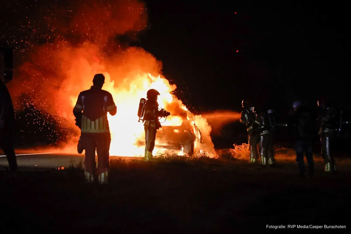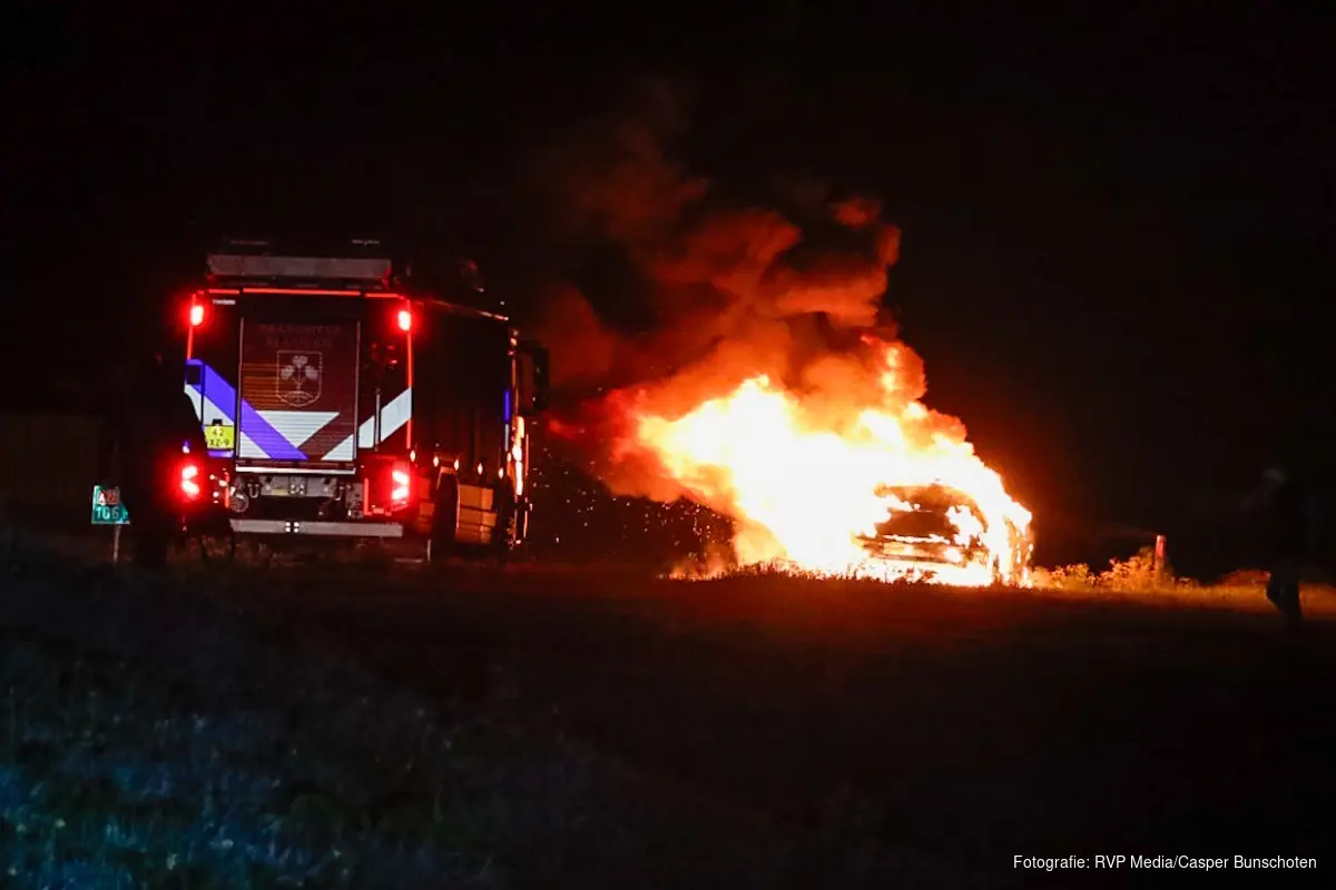 Toen de brandweer arriveerde, stond het voertuig al volledig in brand. De auto is tijdens het rijden in brand gevlogen. In de auto zaten twee inzittenden, één persoon had licht zijn hand verbrand, maar hij gaf zelf aan dat hij geen ambulance nodig had.