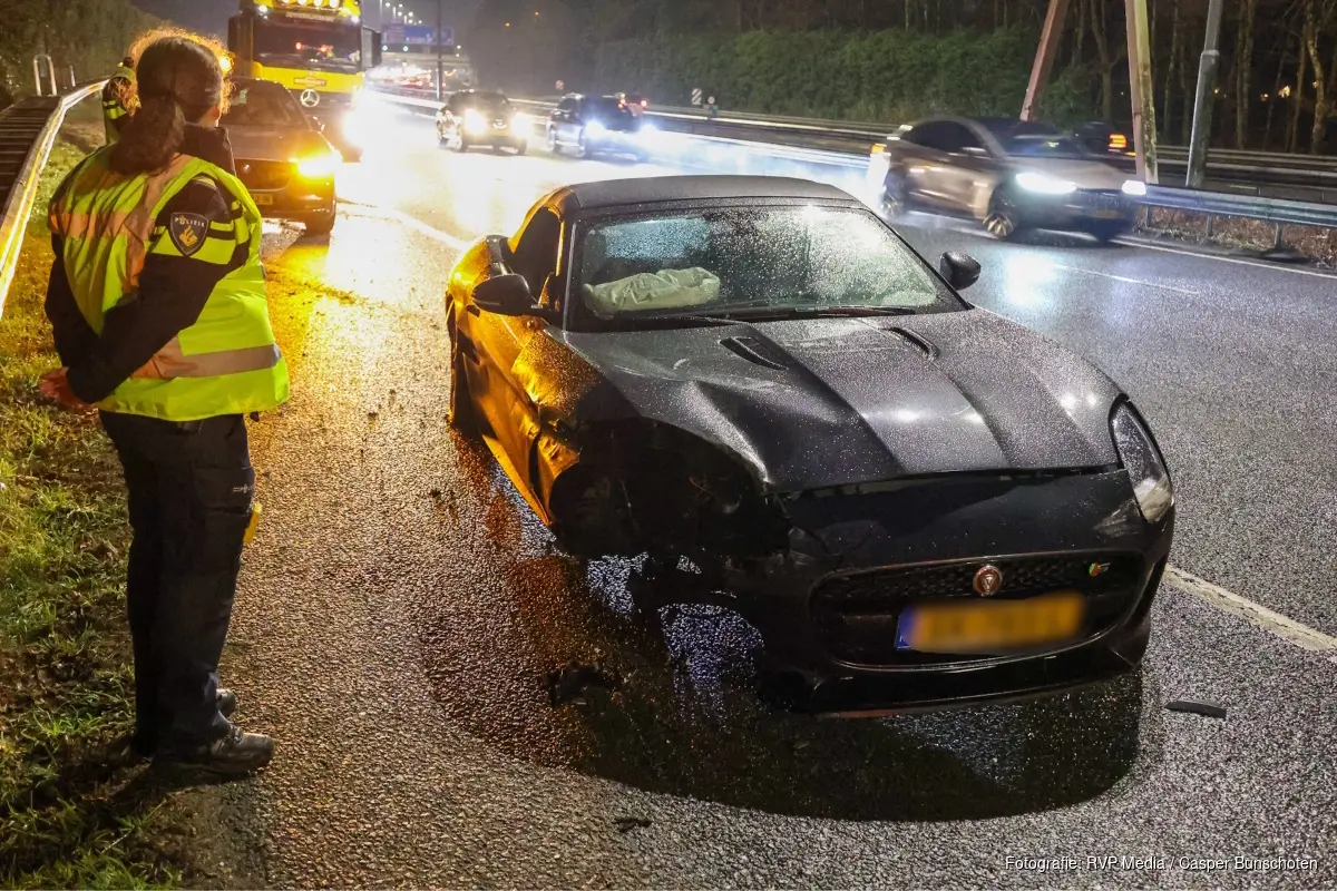 Het ongeval is omstreeks 18:48 gebeurd ter hoogte van hectometerpaal 22.0 richting Amsterdam. Aan de sporen te zien heeft de auto hard de vangrail geraakt. Wat de precieze oorzaak van het ongeval is, is vooralsnog onbekend.