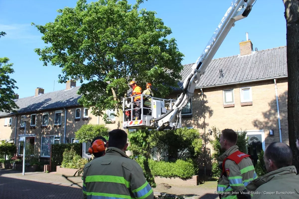 De brandweer kwam snel ter plaatse, omdat de boom mogelijk gevaar opleverde voor de omgeving. Brandweerlieden hebben de stam in stukken gezaagd; de gemeente zal het hout bergen.