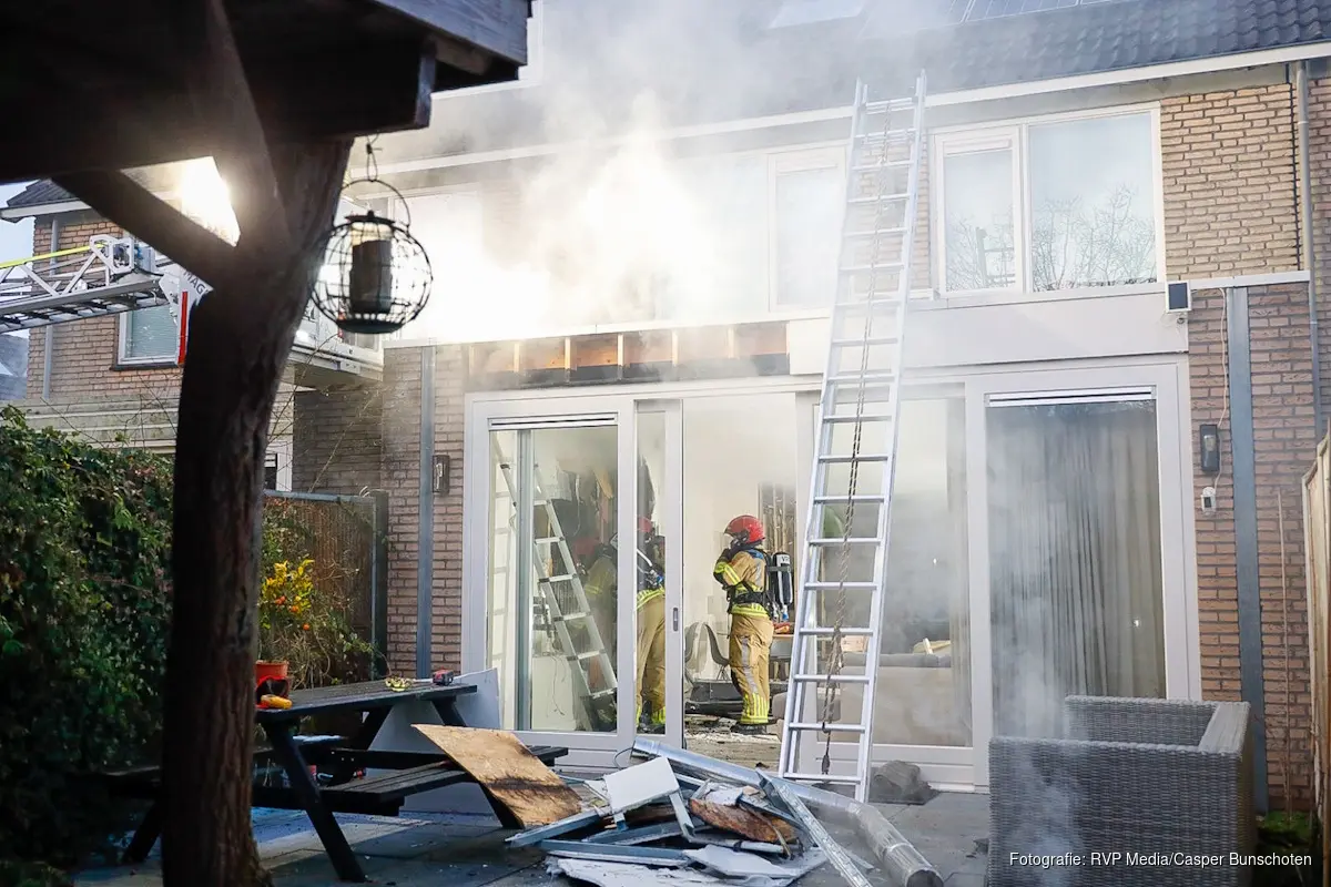 Vanwege de aard van de brand en de benodigde inzet is het incident opgeschaald naar een middelbrand. Brandweerlieden zijn binnen in de woning bezig met sloopwerkzaamheden om de brandhaard goed te kunnen bereiken en verdere uitbreiding te voorkomen.