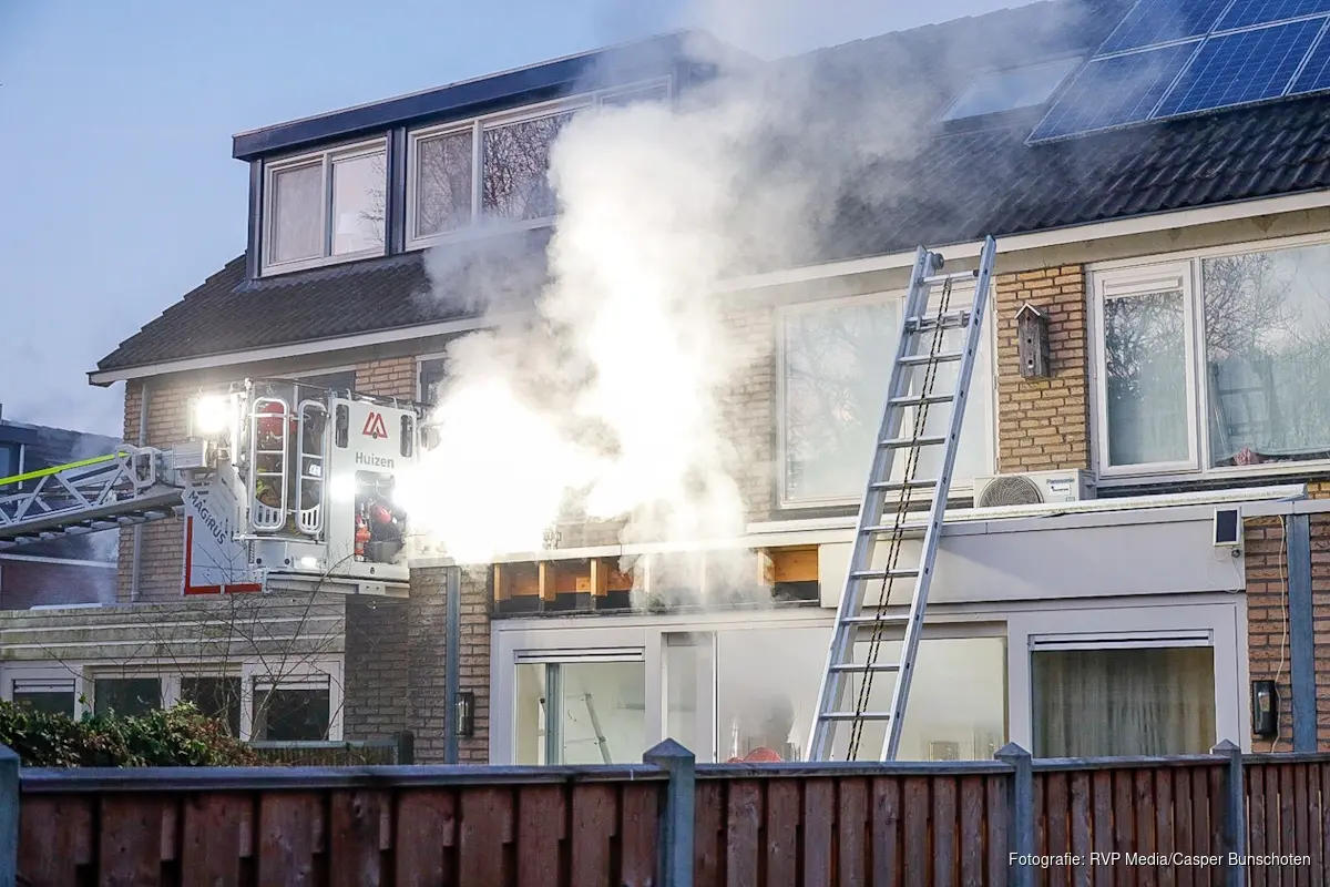 HUIZEN – De brandweer is woensdagochtend rond 07.35 uur gealarmeerd voor een woningbrand aan de Mos in Huizen. Bij aankomst bleek er brand te woeden in de muur van de uitbouw van de woning.