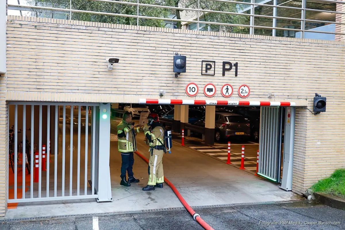 De parkeergarage bevindt zich onder het Nike kantoor. In de parkeergarage staat een elektrische auto in brand. De parkeergarage staat vol rook, de brandweer is de brand op dit moment aan het bestrijden.