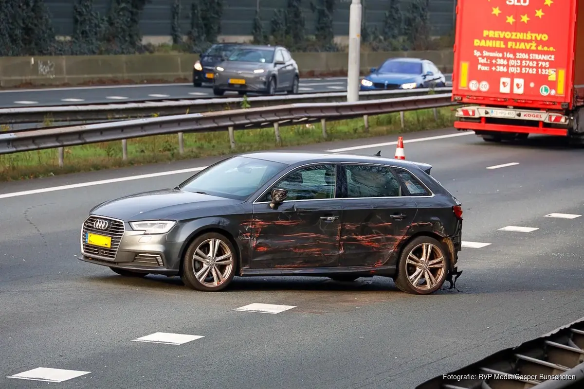 LAREN - Op de A1 bij Laren zijn maandagochtend een vrachtwagen en een auto met elkaar in botsing gekomen.