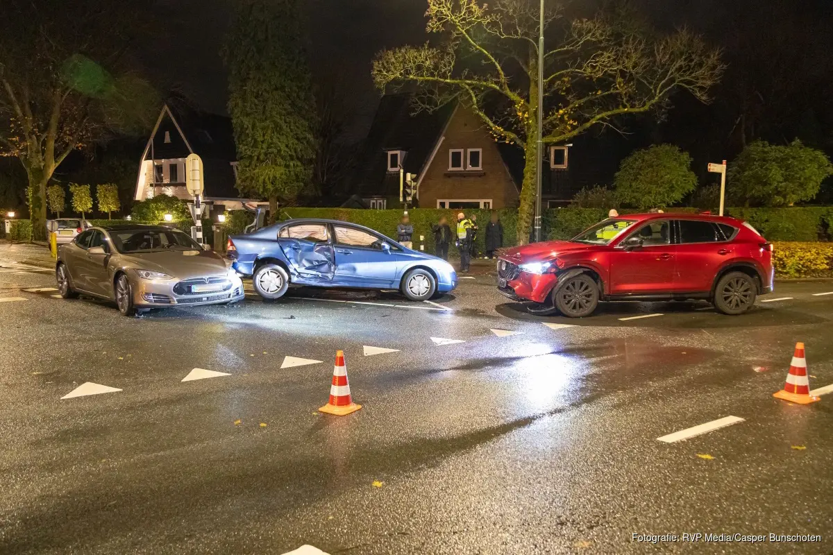 HUIZEN - In de nacht van zaterdag op zondag rond 0:05 uur heeft er aan de Nieuwe Bussummerweg in Huizen een ongeluk plaatsgevonden waar drie auto's bij betrokken waren.