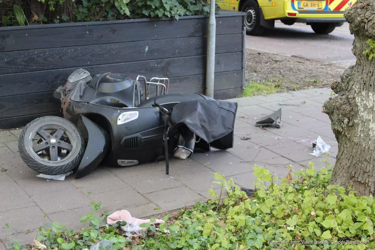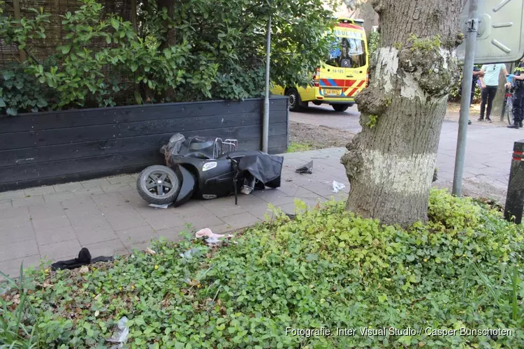 BLARICUM - Aan de Torenlaan ter hoogte van de Prof. van Reeslaan in Blaricum is maandagavond rond 19:00 uur een scooterrijder lelijk ten val gekomen.