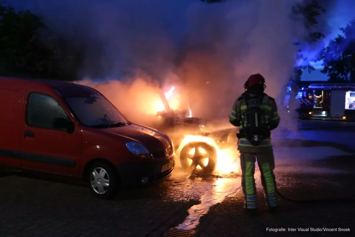 Een naast geparkeerde auto stond ook al snel in brand. Gelukkig kon de brandweer een auto welke aan de andere kant geparkeerd stond redden van de vlammen, desondanks raakte ook deze auto door het vuur beschadigd.