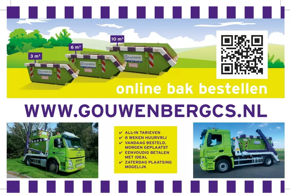 In onze webshop www.gouwenbergcs.nl vindt u alle verschillende afvalstromen, met duidelijk uitgelegd wat u wel- en niet in de container kwijt kunt.