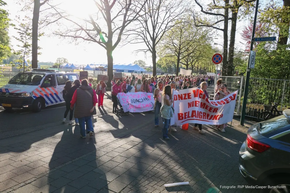 De demonstratie is begonnen op de Nieuw-Loosdrechtsedijk 2 en gaat door Loosdrecht zelf heen en langs het gemeentehuis waar eerder deze week meerdere demonstraties tegen de komst van het AZC hebben plaatsgevonden.