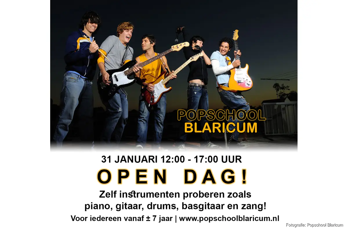 BLARICUM - Zaterdag 31 januari is het weer zover! De Popschool Blaricum opent de deuren voor iedereen die wel eens wil weten hoe het is om achter een drumstel te zitten, aan gitaarsnaren te plukken, de piano eens te proberen, of een liedje te zingen waarbij je bij ieder instrument tips krijgt!