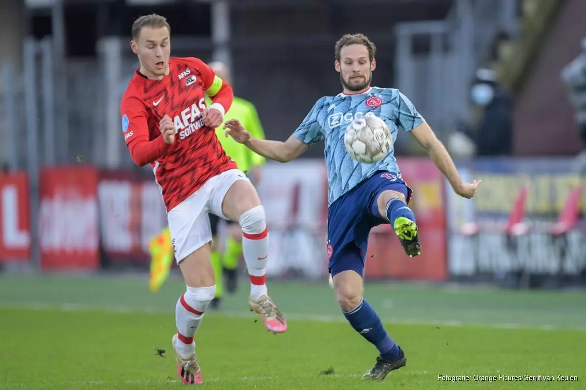 AZ dat na de bekeruitschakeling voor de tweede keer verloor van Ajax moet met dertien punten achterstand zelfs helemaal pas op de plaats maken. In het eigen AFAS-Stadion lieten de Alkmaarders zich de kaas van het brood eten. De gasten begonnen beter en kwamen na een kwartier verdiend op voorsprong. De wijze waarop dat gebeurde gaf wel te denken. Zo "vergat" Boadu de opkomende Blind te dekken, was de bal binnen een paar seconden via Haller bij Antony die geen strobreed in de weg werd gelegd door Wijndal en ging vervolgens ook keeper Bizot niet vrijuit. Bizot doet het vervolgens wel goed als achtereenvolgens Klaassen, Alvarez en Tadic kansen krijgen, maar de mogelijkheden zijn er ook voor AZ. Zo krijgt Gudmundsson twee kopkansen die beide kracht missen.