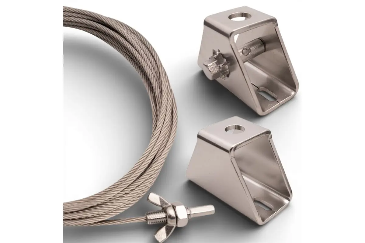 Deze sets bestaan uit een roestvrijstalen kabel met aan beide uiteinden kabelspanners. Door de spanschroef aan te draaien kun je de kabel eenvoudig strakker of losser maken. Handig wanneer je lijnen netjes en strak wilt hebben zonder dat ze gaan hangen.