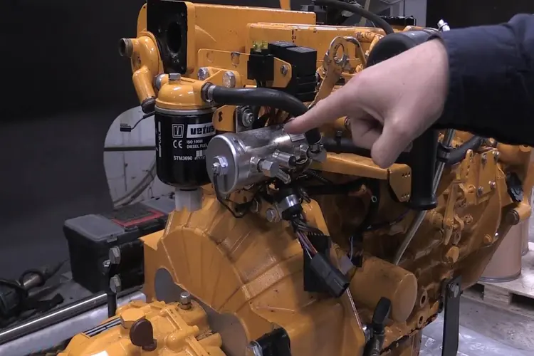 Daarna ga je naar de hogedrukbrandstofpomp en open je het ontluchtingsschroefje. Blijf pompen tot er ook daar diesel uit komt. Zodra dat gebeurt, sluit je het schroefje weer en kun je de motor starten.